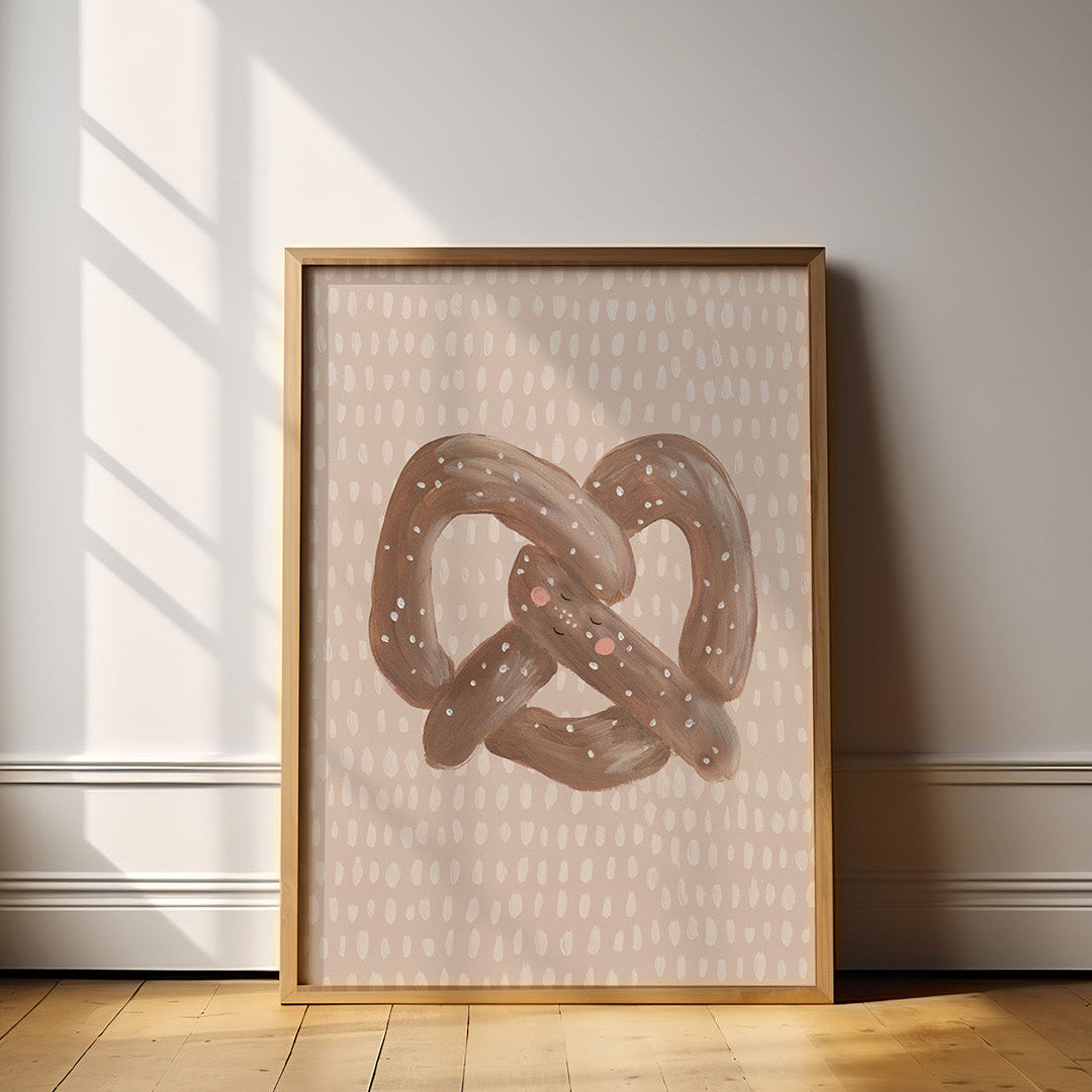 Ignite your child's creativity with this hand-painted pretzel print, with neutral hues on a dotted background, add a little fun to your child's room or playroom. Printed on premium 270gsm velvet Giclee, this enchanting poster is a fun visual delight.