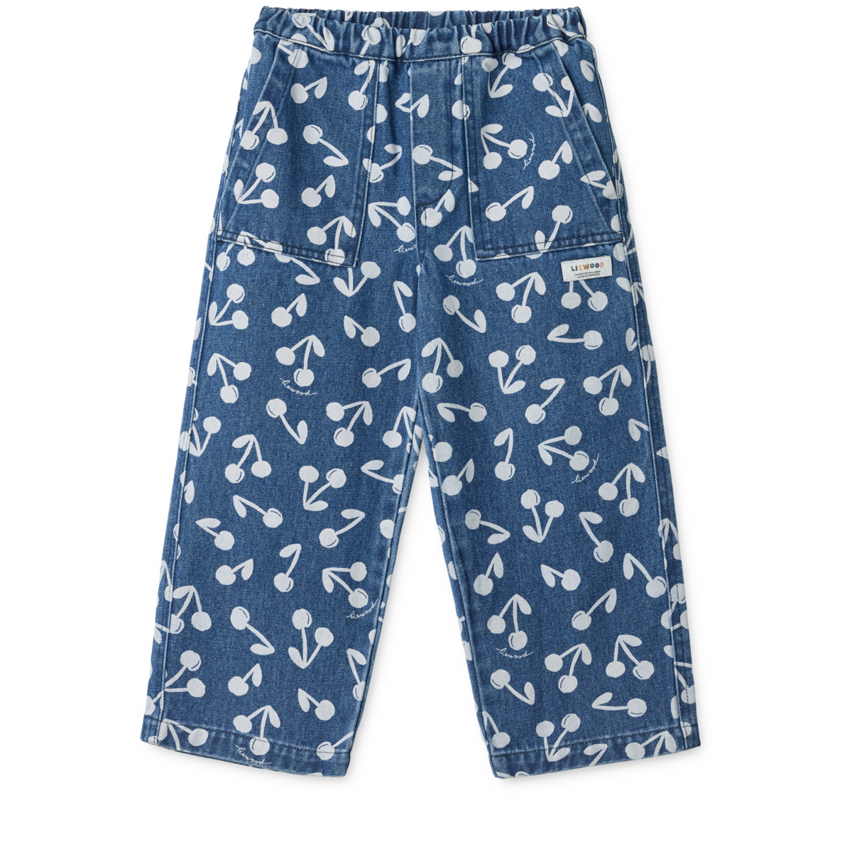 Cesar Cherry Blossom Print Denim Pants (Medium Blue)