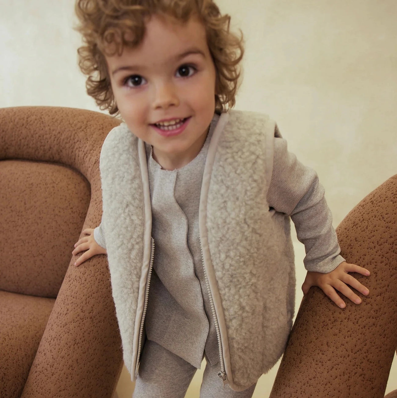 Minimalism with all the style and comfort. This woollen zip-up lined vest is the cutest layering piece we've seen. With roomy pockets and made from beautiful soft wool - the perfect throw-on and go! Exactly why we love it. Designed and made in Europe, this gorgeous brand focuses all their attention on keeping things simple, wearable and sustainable. Available in a wide range of sizes, from tiny baby to growing kids; there is also a matching one for mama's, so you can be just as cosy and cool.