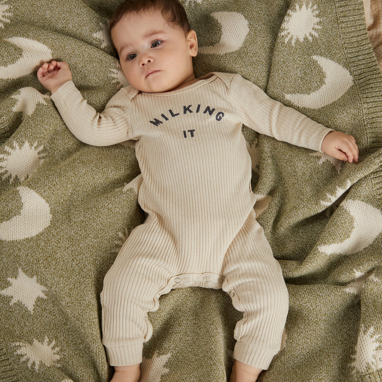 Cozmo Moon + Star Matcha Organic Knit Blanket