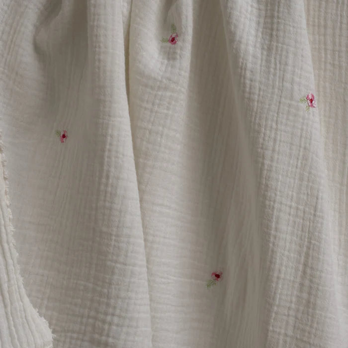 Organic Cotton Embroidered Muslin Blanket (Anemone)