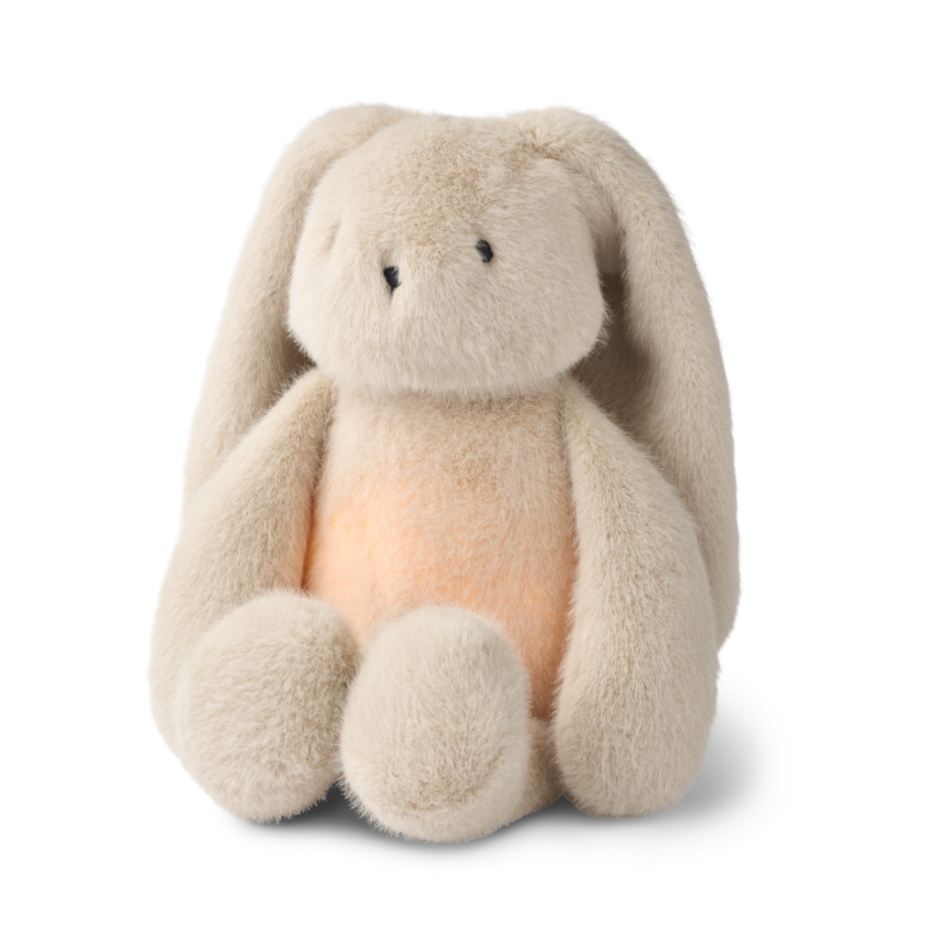 This plush rabbit shaped humming teddy is a gentle baby sleep aid, designed to comfort little ones with soothing sounds and a warm LED night light. It plays eight calming sounds, including white noise, bird songs, and ocean waves to help your baby drift off peacefully. The rechargeable design ensures effortless use night after night. Wrap up and gift as a sweet present for new arrivals too.