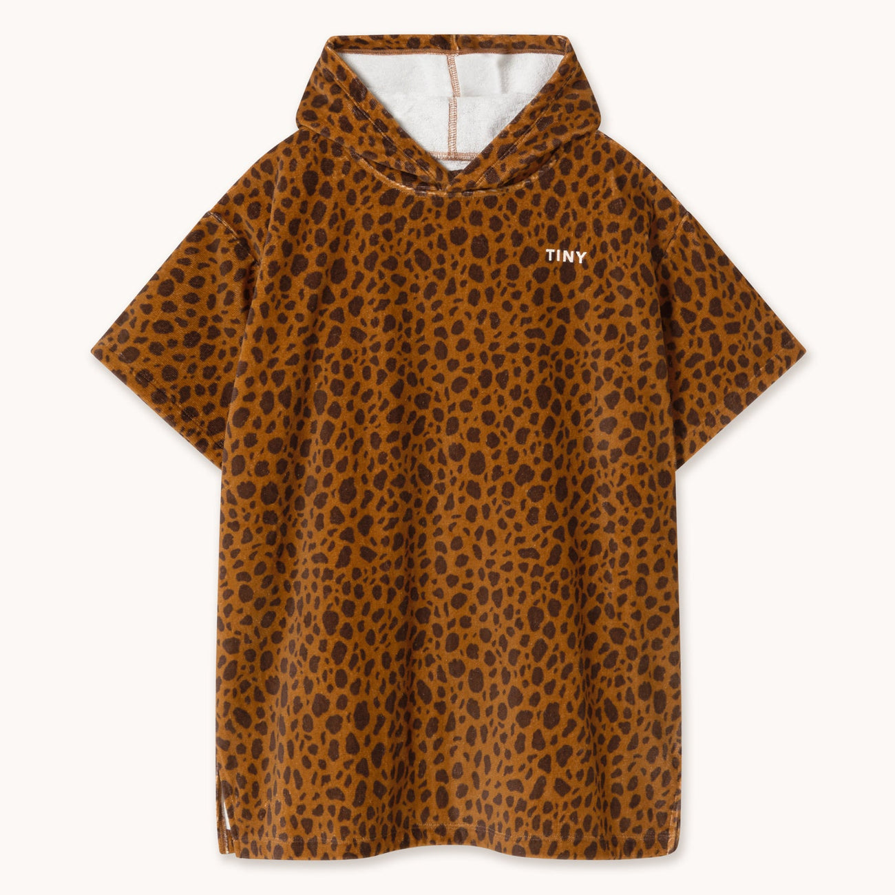 Mini Animal Print Hooded Cotton Towel Poncho (Light Brown)