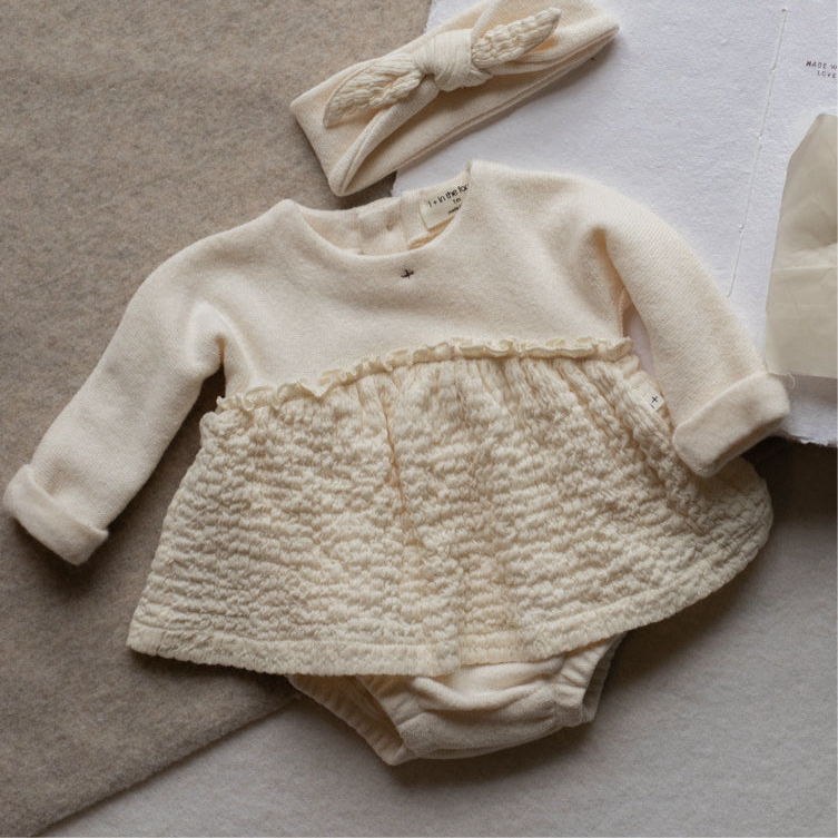 Nicoline Contrast Cotton Fleece Dress with Body (Ecru)