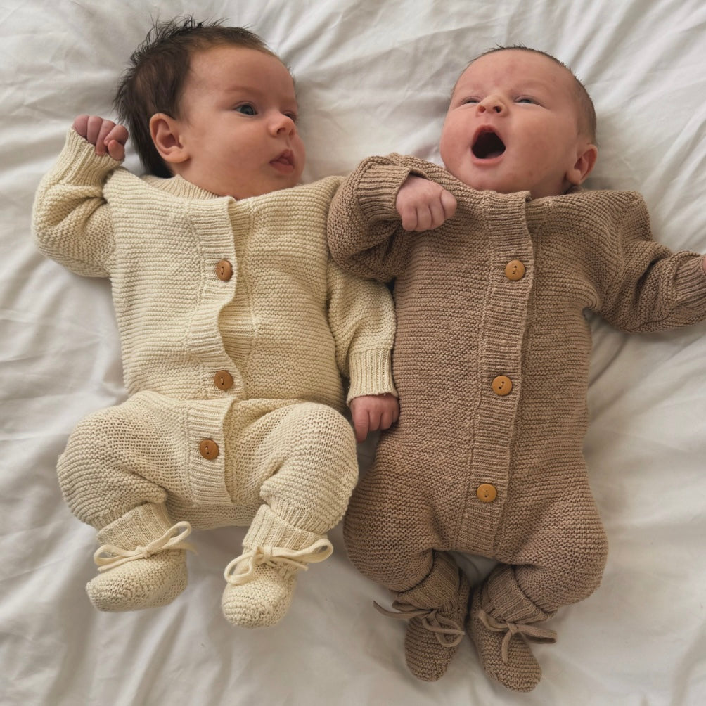 Oatmeal Teddy Cotton Knit Baby Romper