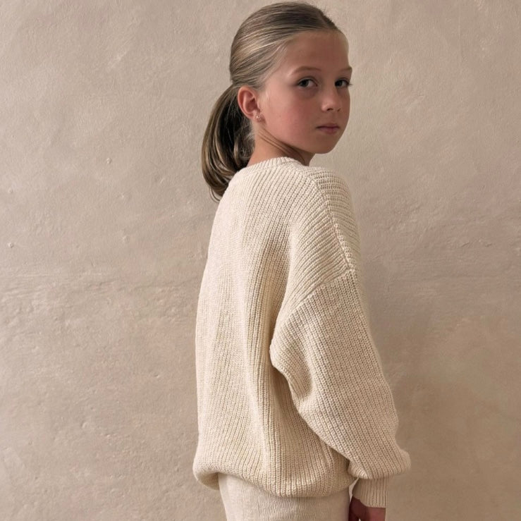 We love this teddy oversized jumper for Autumn/Winter, mainly for the throw-on-and-go ease but also because of it's super soft and cosy chunky cotton knit. Perfect for layering up, the roomy fit allows for plenty of growth and movement, from wriggling babies to little ones who can't sit still.