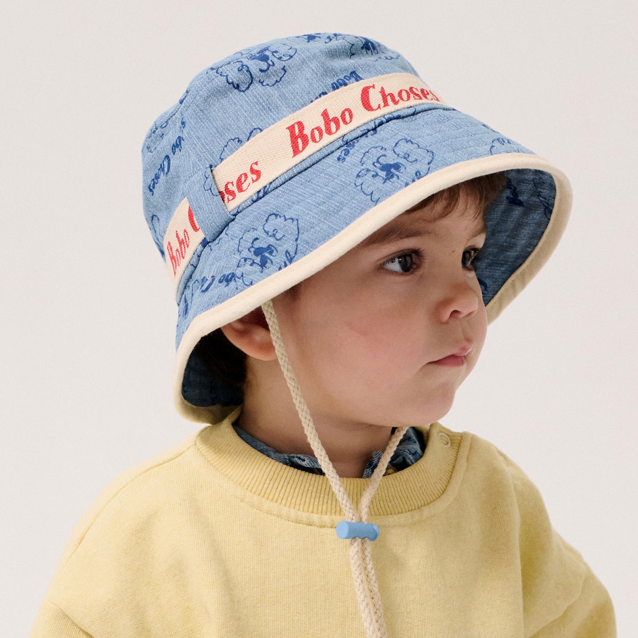 We can't get enough of this pickles the dog bucket hat with the Bobo Choses logo strip. Perfect for shielding eyes from the sun and protecting little heads, it also has a tie under the chin to hold the hat in place. Stylish, practical and sun-safe!