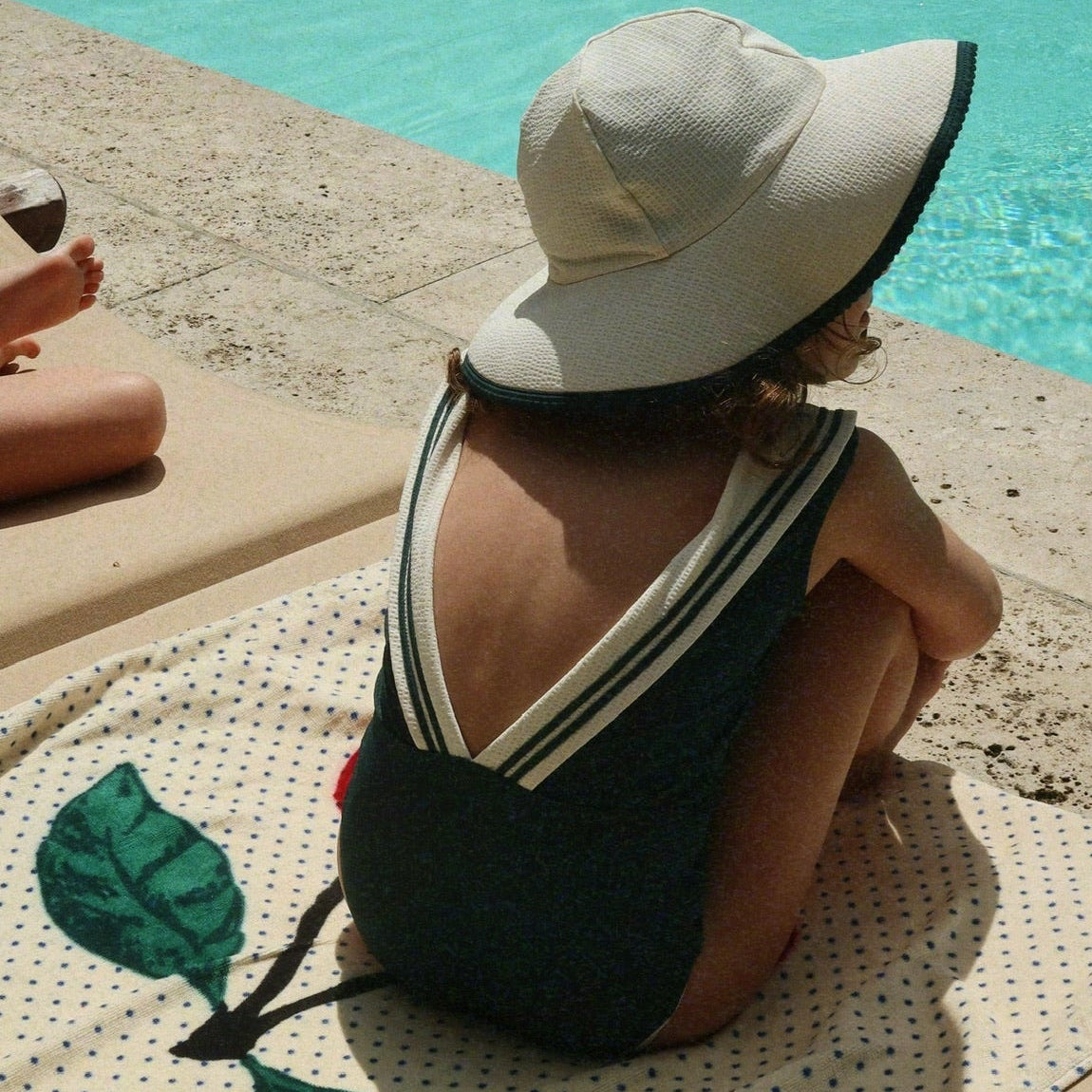 Whether it's for the pool, garden or beach, this sailor inspired swimsuit is perfect for every occasion. We love the sailor collar with a deep v-shaped back, and designed with the Konges Sløjd' signature cherry motif on the front.
