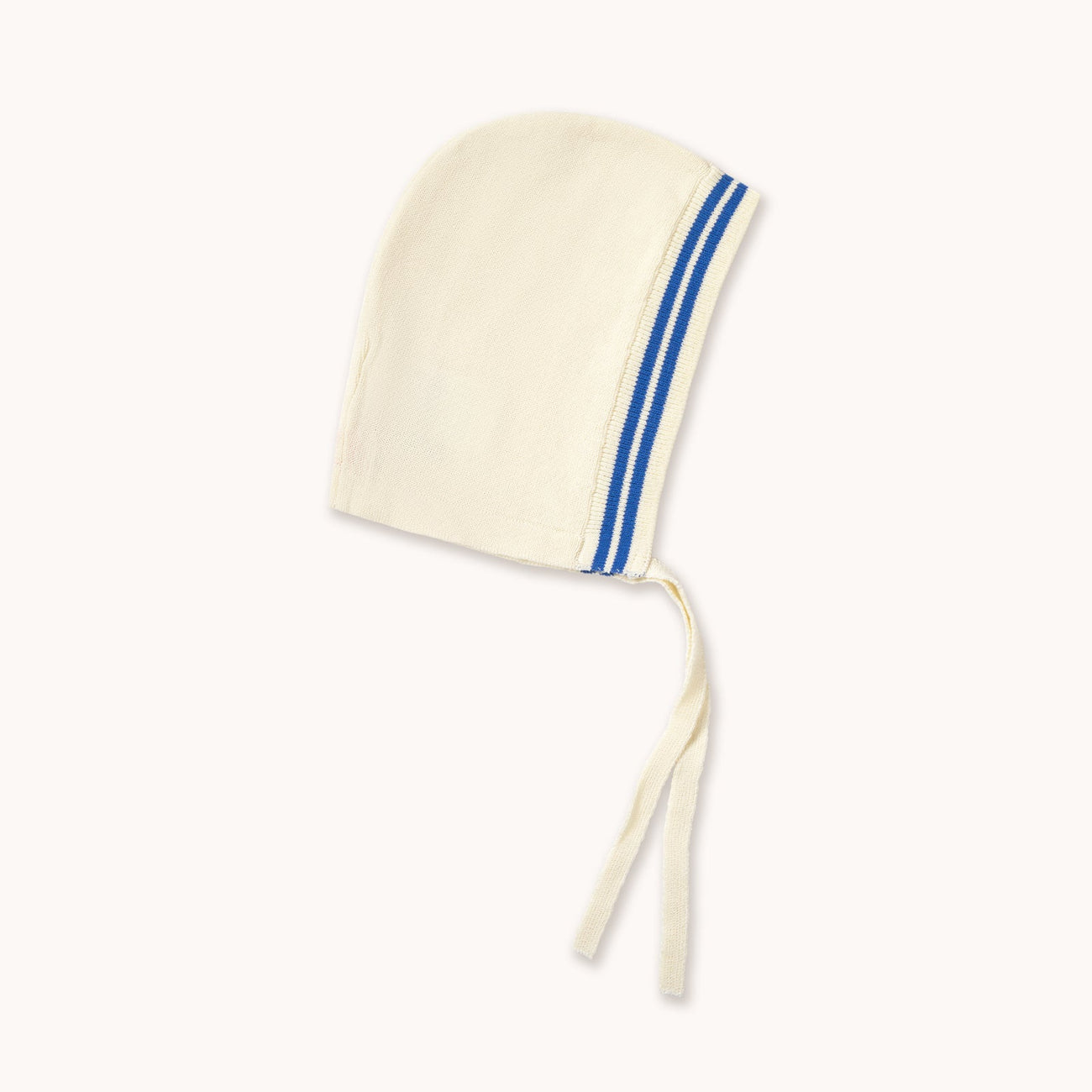 Crafted from a soft knit cotton, this baby bonnet offers warmth and comfort with a playful stripe design. A classic bonnet style, it fits close against the skin with a soft ribbed edge that covers the cheeks and ears as well as their head. A versatile choice and a just as wearable alternative to a beanie.