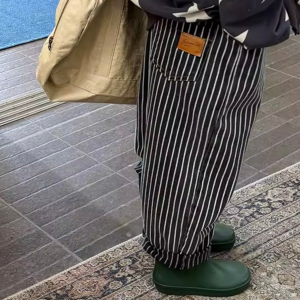 This playful pair of striped jeans are a stylish addition to your little one's look. Loose and baggy, a modern wide leg that tapers at the ankle and have a comfortable wide elastic waistband. A roomy and non-restrictive style they're perfect for stylish kids always on the move. A versatile style, great for tucking in tops, speedy dressing and little ones to pull up themselves.